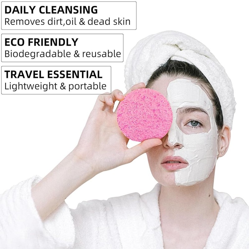 - 【Easy to Use】You just need immerse it in water to make it round until it expands to full size when using this natural sponge for face cleaning, and you can use these facial sponges cleansing washable with alongside your makeup remover and cleanser.