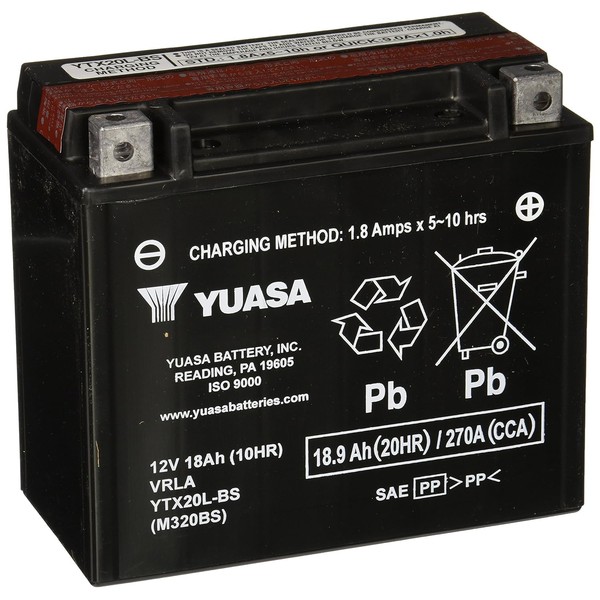 Yuasa YUAM320BS YTX20L-BS Maintenance Free AGM Battery with Acid pack