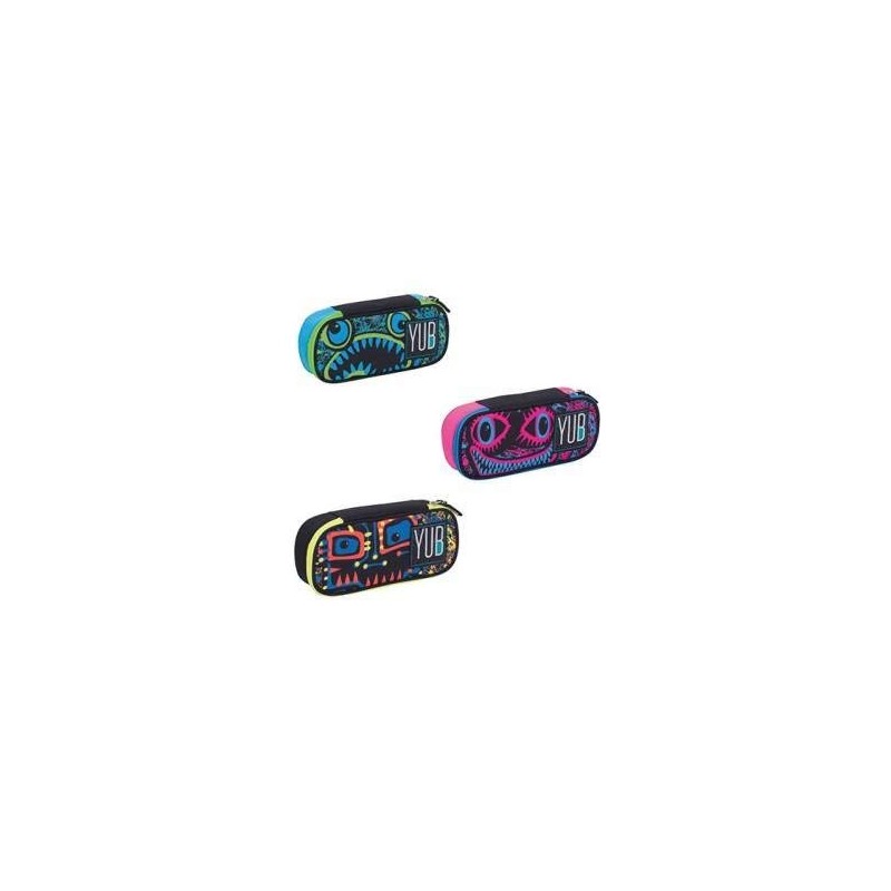 'Pencil case round plus svalvolati YUB spray water of colour multicolor as the basis for the faces "monstrous that draw the line. Features: Size: 23cm x 10cm x 5.5cm Fabric Polyester 900d Resinised Inner Pocket Elastic Pen Loops Available in 3 Different Designs