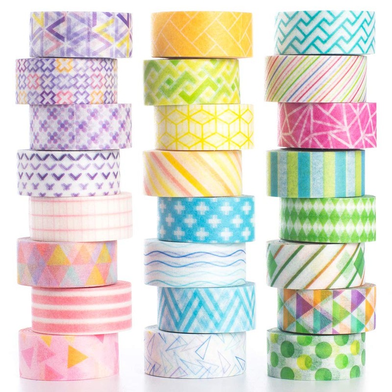 Yubbaex ミニ マスキングテープ虹ライン 10mm幅 x 24巻 薄いです プレゼント包装、DIY工芸品、ノートの装飾に使える