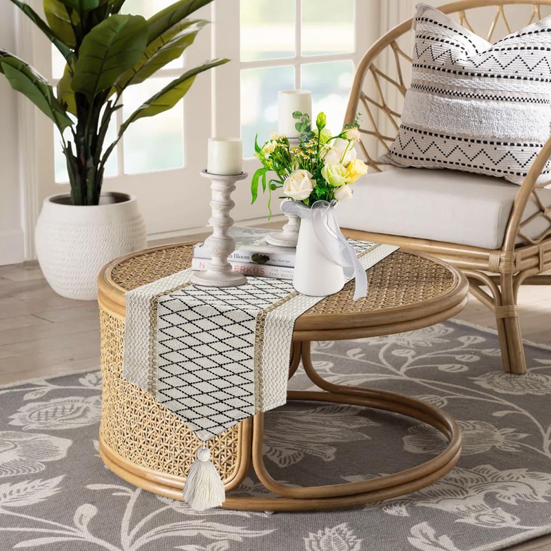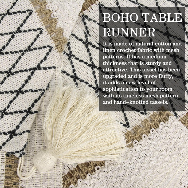 - ✅【Farmhouse Table Runner】The short dresser runner top is hand-woven to bring a aesthetics bohemian farmhouse style to your home decor, This spring table runner adds a new level of sophistication to your room with its timeless mesh pattern and hand-knotted tassels.