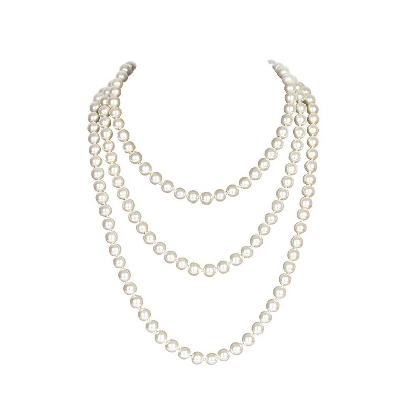 - Pearl Necklace: This long pearl necklace is a good accessory for 1920s theme parties or other dress up parties, suitable for wear with sweaters