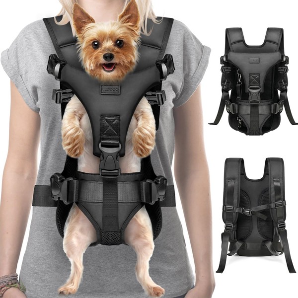 YUDODO Dog Backpack Carrier with Adjustable Safety Buckle Easy-fit Pet Dog Front Carrier for Small Medium Dog Legs Out Dog Chest Carrier for Traveling Walking Cycling (M Black)
