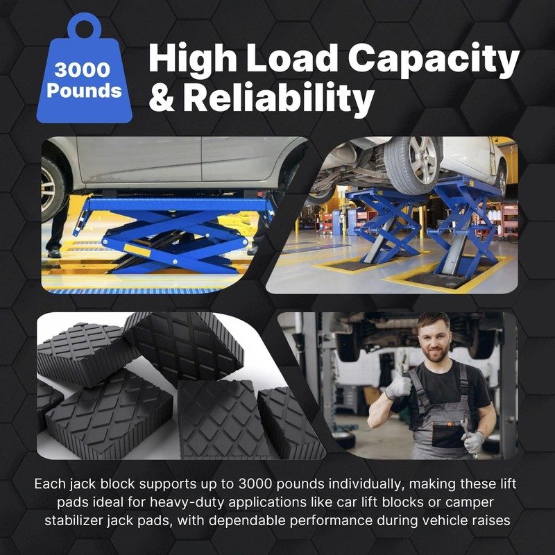 - High Load Capacity & Reliability: Each jack block supports up to 3000 pounds individually, making these lift pads ideal for heavy-duty applications like car lift blocks or camper stabilizer jack pads, with dependable performance during vehicle raises