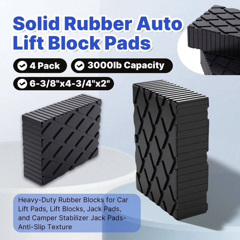 Upgrade your garage with the Yudylg Solid Rubber Auto Lift Block Pads—engineered for unmatched safety and performance in vehicle lifting. This 4-pack set of premium rubber blocks is your go-to solution for car lift pads, lift blocks, jack pads, and automotive