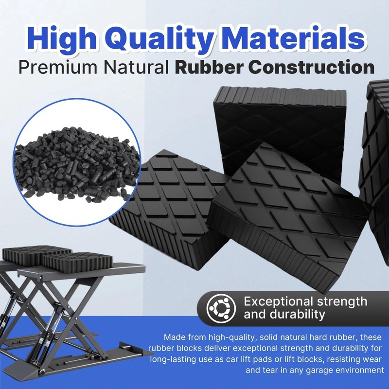 - Premium Natural Rubber Construction: Made from high-quality, solid natural hard rubber, these rubber blocks deliver exceptional strength and durability for long-lasting use as car lift pads or lift blocks, resisting wear and tear in any garage environment