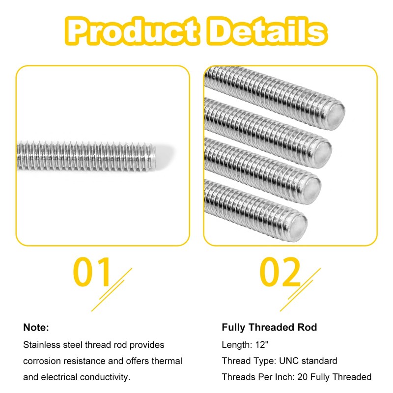 - Package Include: 1/4"-20 fully threaded rods * 4.