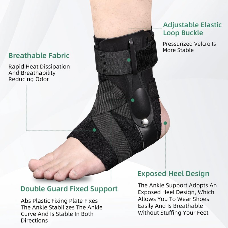 - Featuring an ABS plastic fixation plate, our ankle brace effectively stabilizes the ankle curve, providing dual-directional stability. The adjustable strap with a secure hook-and-loop closure ensures a perfect fit and enhanced stability. Designed to meet your specific needs, this brace offers optimal compression and support, making it an ideal choice for ankle stabilizer brace, ankle support, ankle compression sleeve.