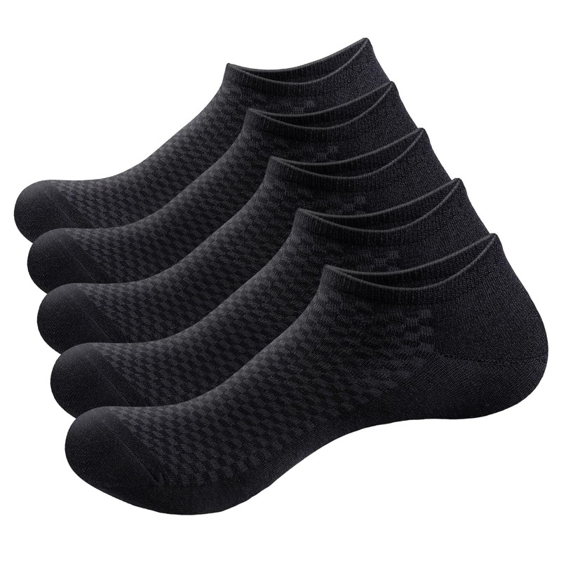 YUEDGE Men's Ankle Bamboo Socks Breathable Anti-Odor Low Cut Thin Black Short Socks For Men Pack Size 10-13, 5 Pairs