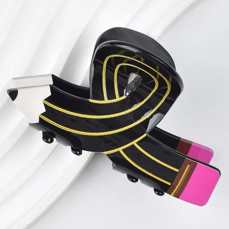 - Versatile Hair Accessory: This set includes 3 stylish pencil hair claw clips in black, pink, and yellow hues to complement various hairstyles