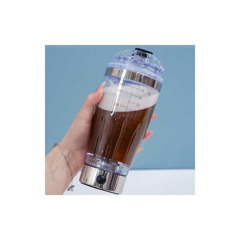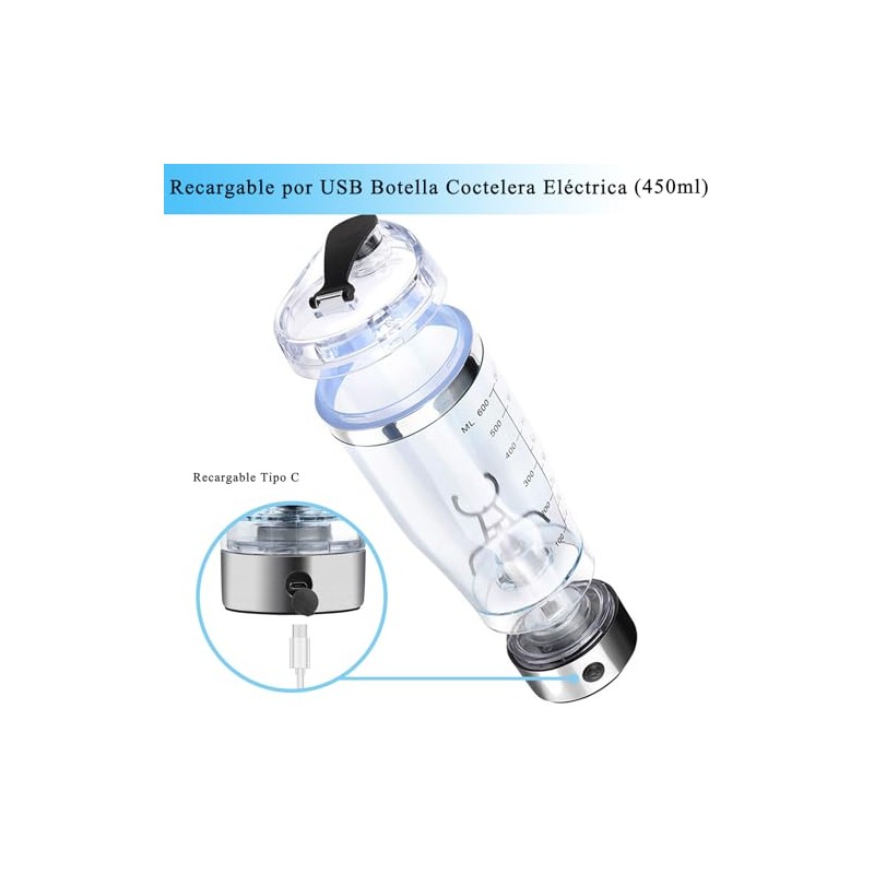 Yuehuam Botella para Proteina Gym con mezclador, Recargable por USB Botella Coctelera Eléctrica, Botella Shaker de 450ml Potente Botella Mezcladora para Batidos Suaves y Suplementos, Nutrición