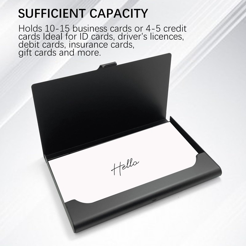 - Despite its slim appearance, our business card holder can hold about 15 business cards. The compact design not only saves space, but also meets your daily business card needs and allows you to always have a full supply at hand.