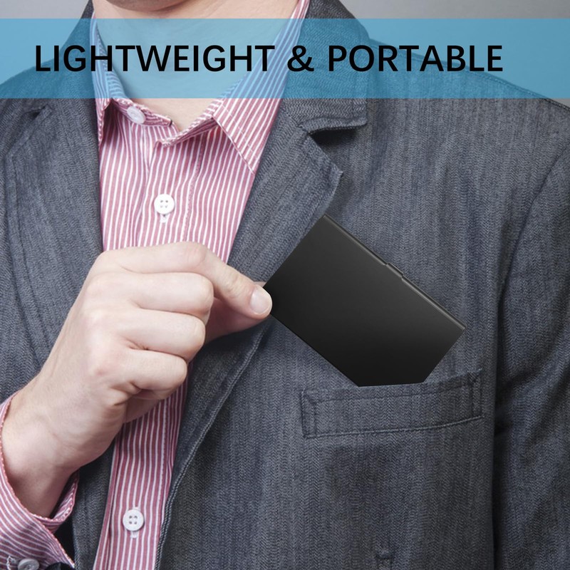 - Ultra thin 8 mm thick: the business card box is only 8 mm thick, fits in any pocket, purse, etc. and holds about 15 business cards, which is convenient to carry and corresponds to daily use.