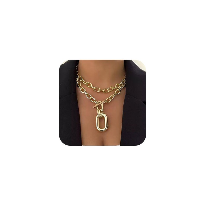 YUEKISEN Chunky Chain Necklace Punk Cuban Chain Choker Necklace with Toggle Clasp Gold Layered Necklace Hip-hop Trendy Jewelry for Women