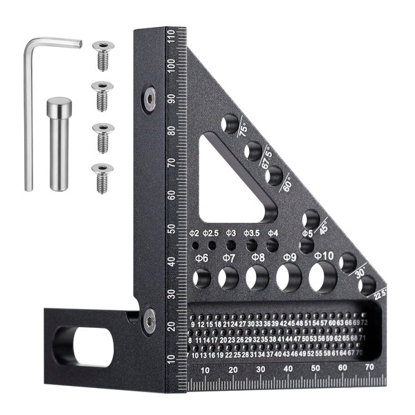 - Multi-Angle Design: Our 3D combination measuring tool is designed with 6 marking holes of 1/16 inch diameter, usable for drawing angles from 22.5 to 90 degrees. It also has preset positioning holes for angles of 22.5°, 30°, 45°, 60°, and 67.5°.