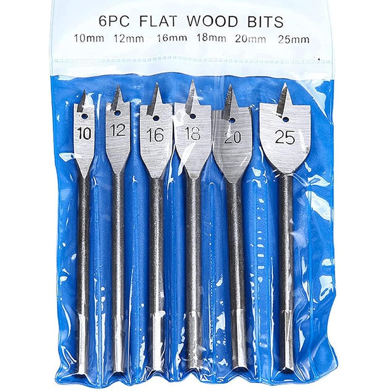 YUENTOEN 6 Pieces Spade Drill Bit Set 10-25mm Paddle Flat Bits with Quick-Change 1/4 inch Hex Shank for Woodworking