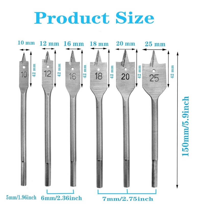 - Size Included: This drill bit set has 6 different size bits (10mm, 12mm, 16mm, 18mm, 20mm, 25mm), which can meet all the needs of your woodworking drilling project