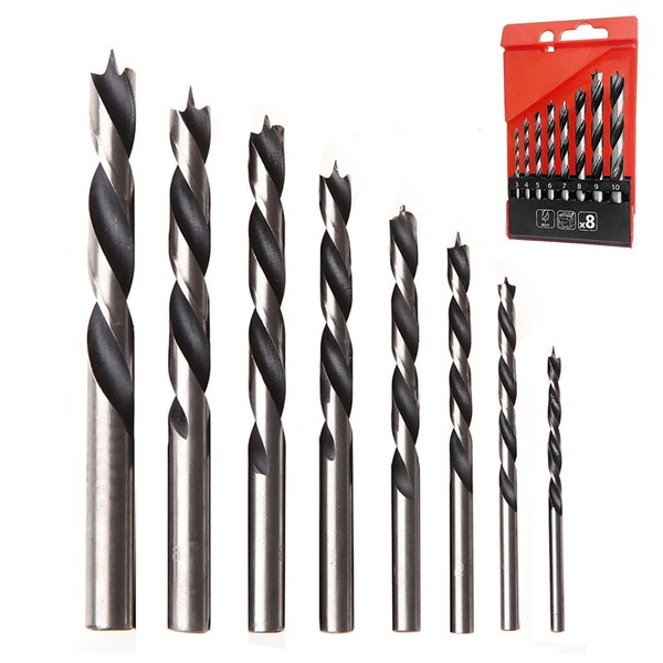 YUENTOEN 8PCS Brad Point Drill Bits, 3-10mm Spiral Twist Wood Drill Bits Set for Woodworking Softwood Laminated Wood MDF