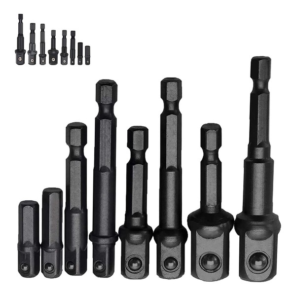 YUENTOEN 8Pcs Impact Socket Adapter Set, Socket to Drill 1/4" 3/8" 1/2" Adapter, Hex Shank Impact Driver Socket Adapter for Automotive DIY, Extension Socket Bits, Handle Nut Driver and Drills