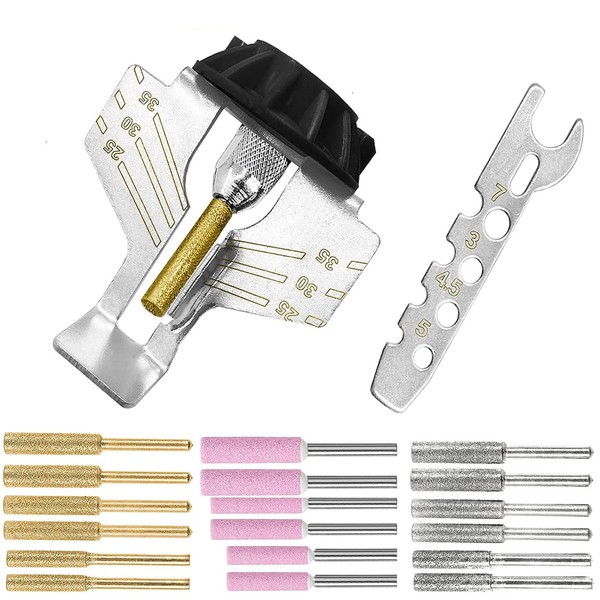 Yuentoen Pack of 20 Chainsaw Sharpening Attachment, Chainsaw Sharpener with Angle Guide and Diamond Sharpening Stone Files, Chainsaw Sharpening Set for Mini Drills, Rotary Tools and Accessories