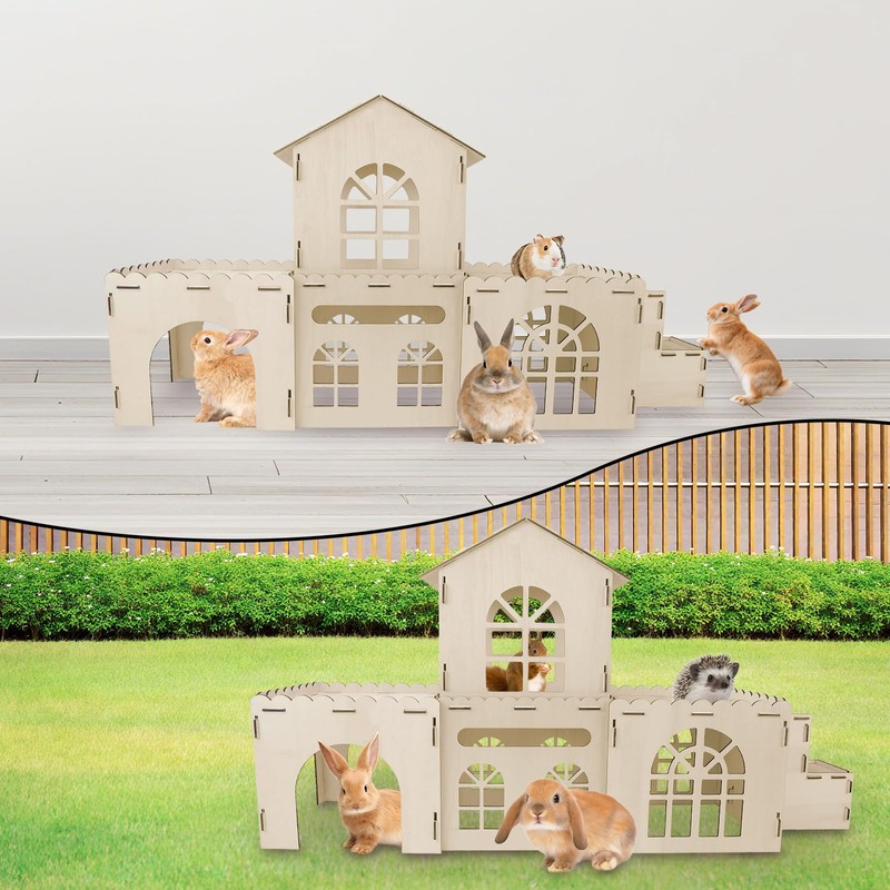 3. Cute design: The rabbit houses and hideouts has hollowed out patterns of windows and arches, attracting the interest of pets.