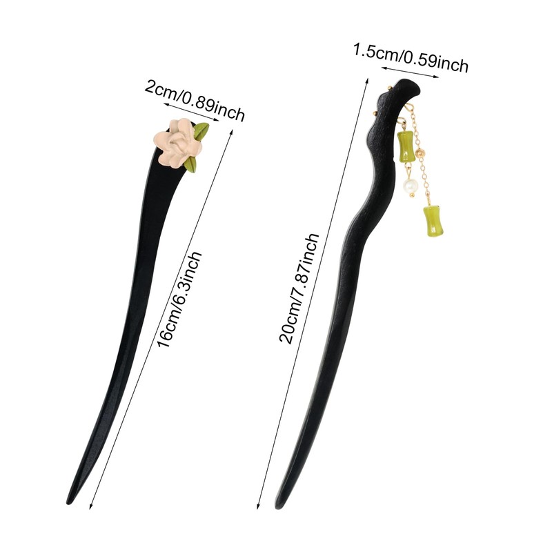 - Package includes: 2PCS vintage wooden hair stick (2 different styles).