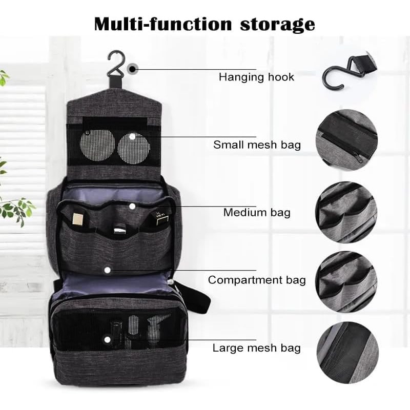 - đ§łăLarge Capacity with Multiple Compartmentsă This fold out wash bag features a smart multi-layer design with mesh pockets and elastic loops to neatly store toiletries, cosmetics, toothbrushes, razors, and towels. Keep everything in one place and easy to access during travel.