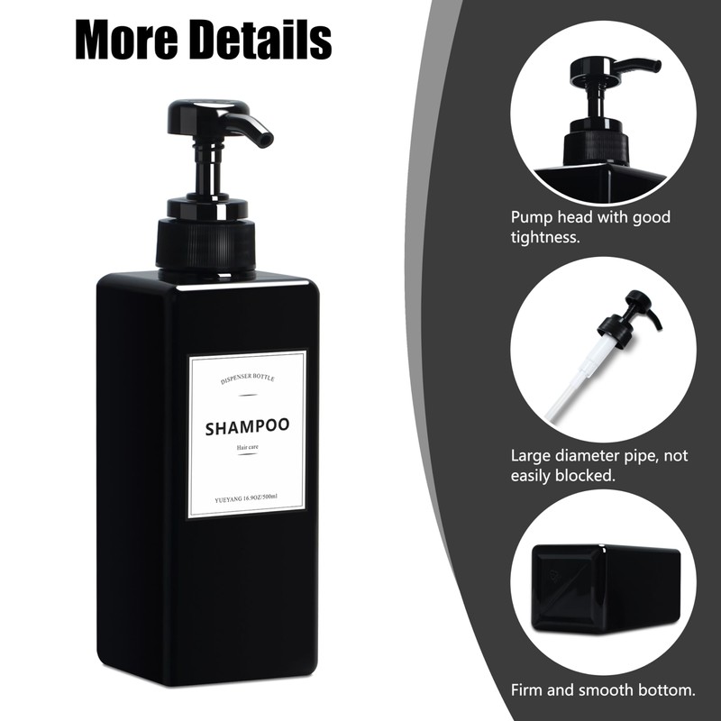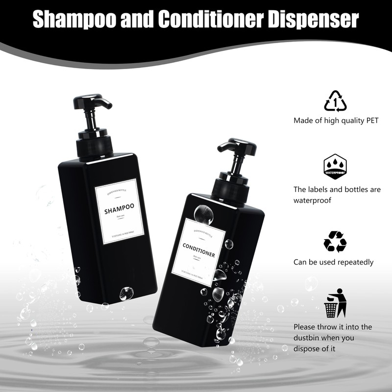 - 【Stickers】Come with three waterproof stickers to help you to identify shampoo, conditioner, and body wash.