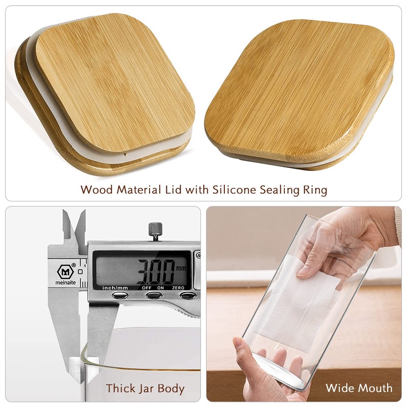 - 【Airtight Bamboo Lids】:The lids made of nature bamboo,solid,durable,healthy and Eco-friendly.There is a sealing rubber ring on the bamboo lid,ensure the lid is completely sealed,not any air and water can come in.Keeping food fresh for longer.