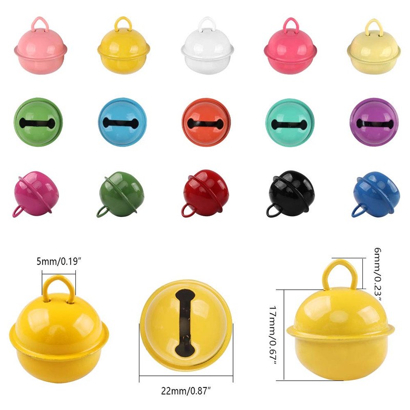- Candy ribbon hole design: Each bell has a bright candy coloured appearance, a cherry-like size and a large metal hole at the top of the bell for easy threading, hanging and sewing (the eyelets are large enough to be threaded by children). You can sew colors bells firmly on the ribbon or thin nylon ribbon and so on.