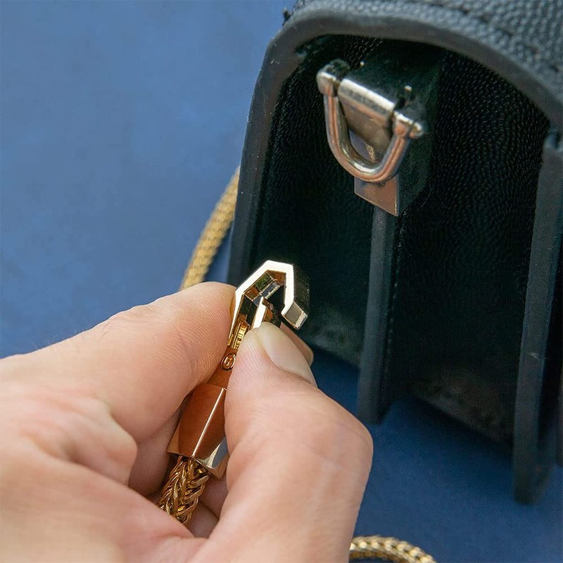 - Easy to use: at both ends of the bag chain there are two metal buckles that allow you to attach the chain to the bag.