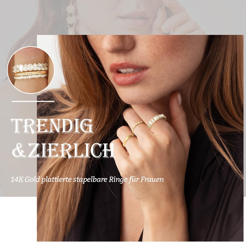 • Women's ring set: gold-plated rings for women come in a delicate box. Sparkling diamond eternity rings, each set contains unique diamond elements that are very shiny and fashionable. These rings can be worn individually or stacked. Elegant and stylish designs, simple yet timeless