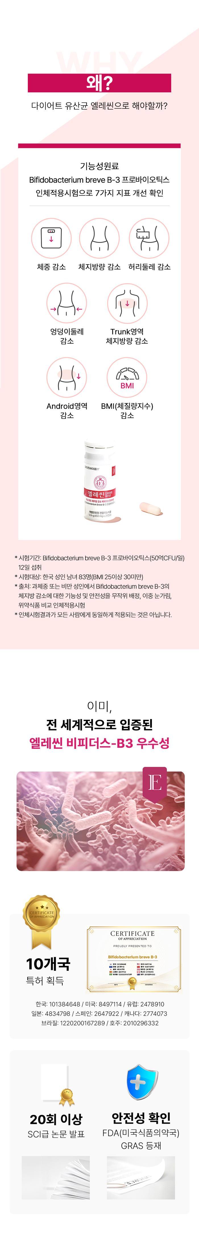유한양행 다이어트유산균 엘레씬(비피더스 B3) 12주분(3박스) dsmall036