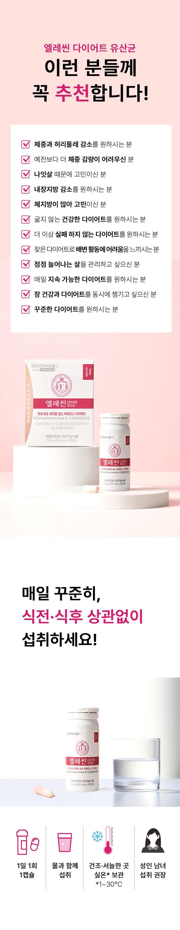 Yuhan Corporation Diet Probiotics Elecyn (Bifidus B3) 12-Week Supply (3 Boxes) dsmall036 / 유한양행 다이어트유산균 엘레씬(비피더스 B3) 12주분(3박스) dsmall036