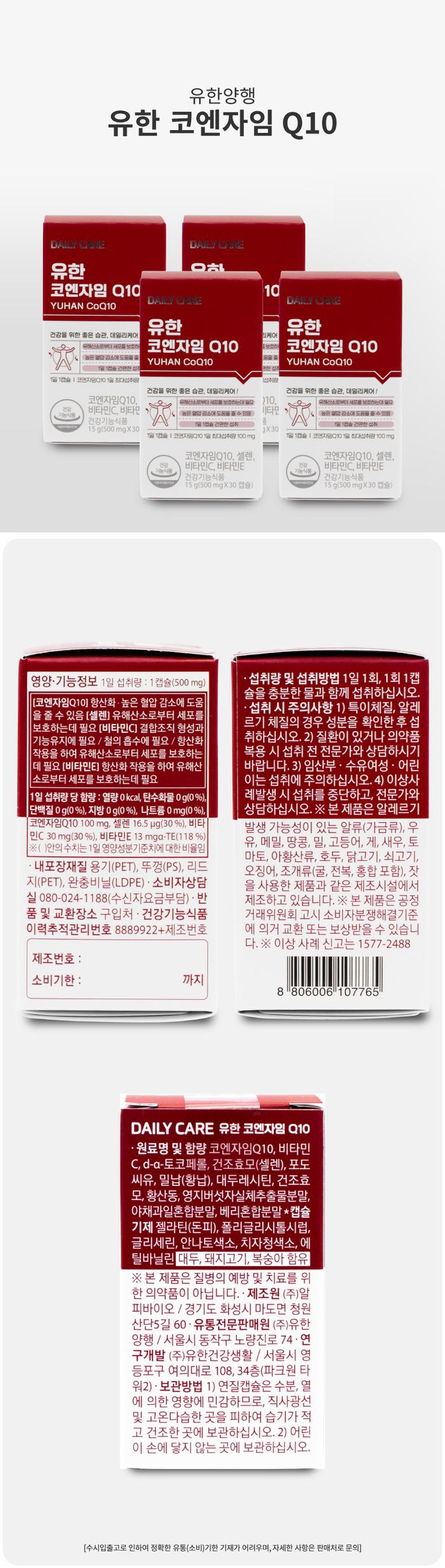 Yuhan Corporation Yuhan Coenzyme Q10 500mg x 30 capsules (4 boxes) / 유한양행 유한 코엔자임Q10 500mg x 30캡슐 4박스