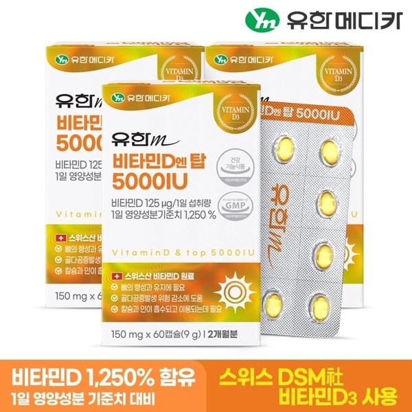 Yuhan Medica Vitamin D N Top 5000IU 60 capsules x 3 (6 months supply) / 유한메디카 비타민D 엔 탑 5000IU 60캡슐x3개(6개월분)