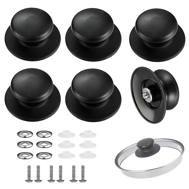 YUHENGCT 鍋蓋 取っ手 6個セット 鍋ふたノブ 鍋蓋 つまみ 耐熱性 滑り止め付き 丸形 蓋ノブ 調理器具アクセサリー 鍋 取っ手 ポットリッドパーツ 鍋の蓋交換用 ネジ付き (ブラック)