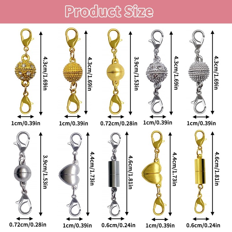 - Double Magnetic Necklace Clasps: This set includes 10 magnetic clasps in 5 unique styles—5 gold and 5 silver. Each style comes with 2 pieces, ensuring you have plenty of options for your jewelry-making needs.