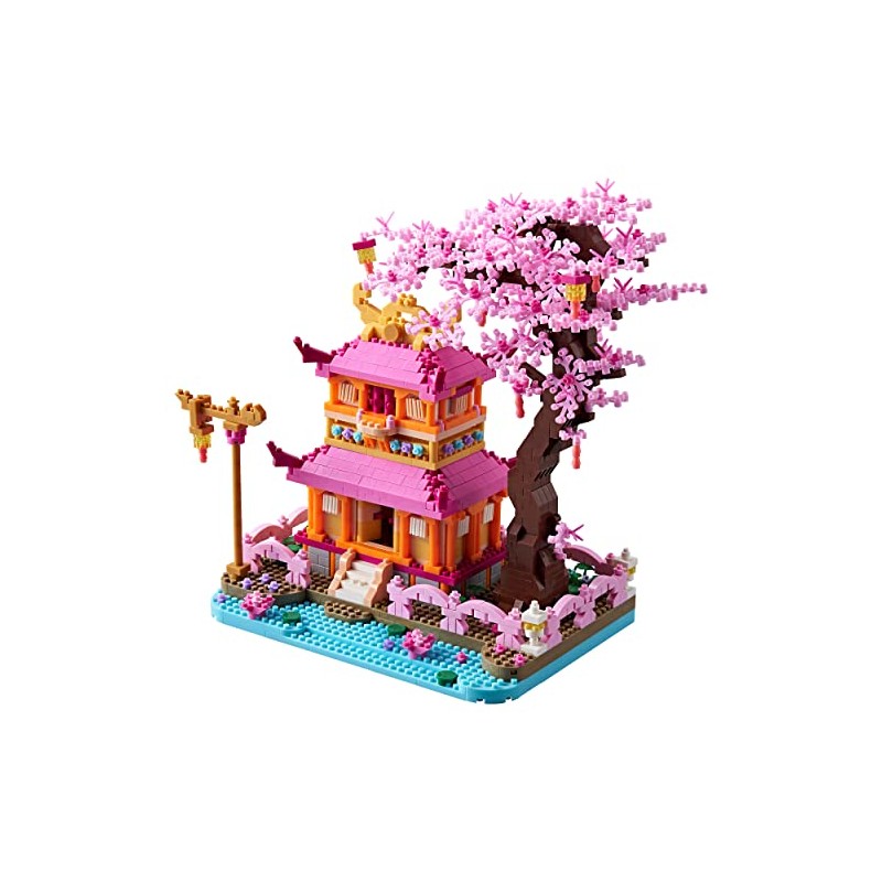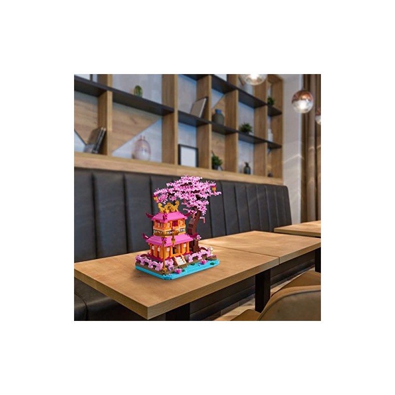 YUJNS Sakura Tree House Architecture Micro Blocks Set of Japanese Cherry Blossom Bonsai Trees, Building Mini Bricks Modle Kit Gift for Kids and Adults, 1810 PCS (with 2 Figure)