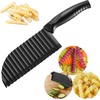 YukaBa Crinkle Potato Cutter 2.9" x 11.8" Stainless Steel Waves French Fries Slicer Handheld Chipper Chopper, Vegetable Salad Chopping Knife Home Kitchen Wavy Blade Cutting Tool, Black (1 Pack)