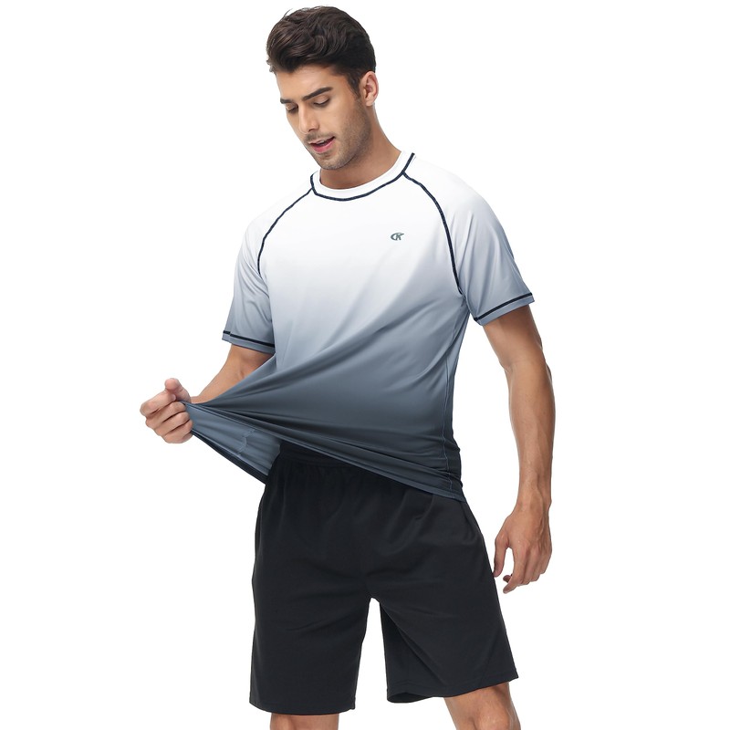 YuKaiChen Rashguard Men's Swimming Shirt, Quick-Drying, Breathable Swimming T-Shirt with Short Sleeves, Rash Guards, Water Sports for Men, White-carbon grey, XL
