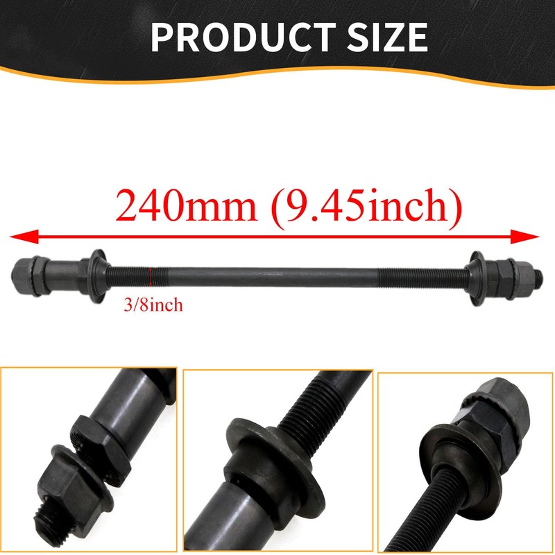 yukata- Bike axle 240mm / 9.45in Bike multi-speed rear hub axle Rear hub axle Bicycle axle 3/8 "Black 26tpi bike hub axle -1PCS