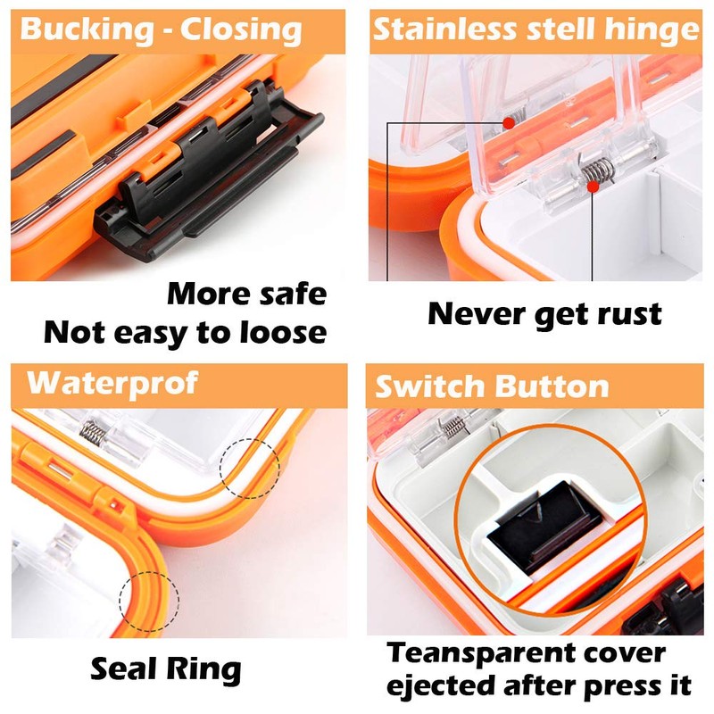 - EXCELLENT WATERTIGHT PERFORMANCE: We designed a rubber belt around the perimeter of gap so that it has a quite excellent waterproof performance. And more, it will float in water. You don't have to worry about losing your fishing gear box anymore