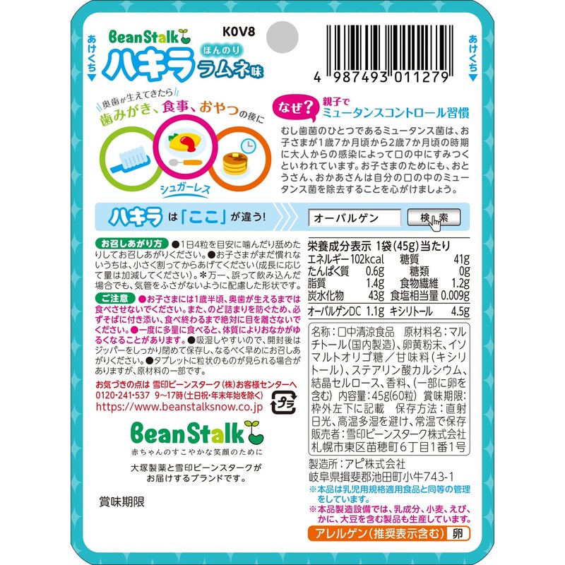 Yukijirushi Bean Stark Hakira Ramune 60 Tablets [Ages 1.5 and Up]