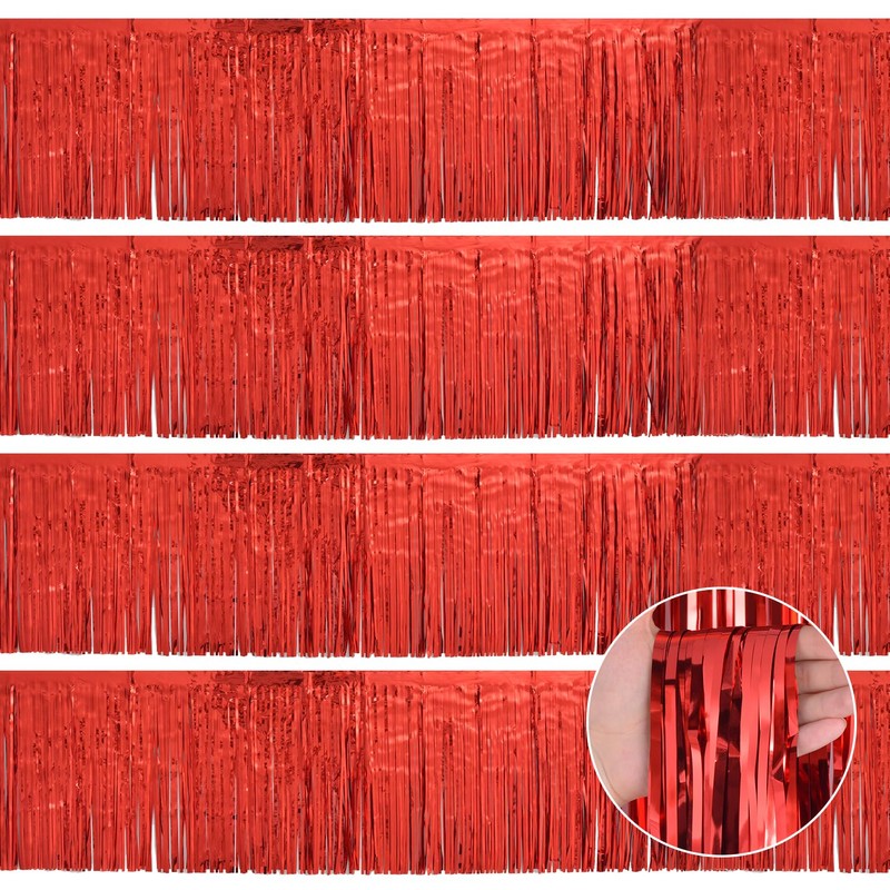 YUKL Red Table Skirt Red Birthday Decorations Red Streamers Party Decorations 4Pack 12FT Red Tinsel Fringe Garland,Red Fringe Backdrop Curtain Decorations for Party