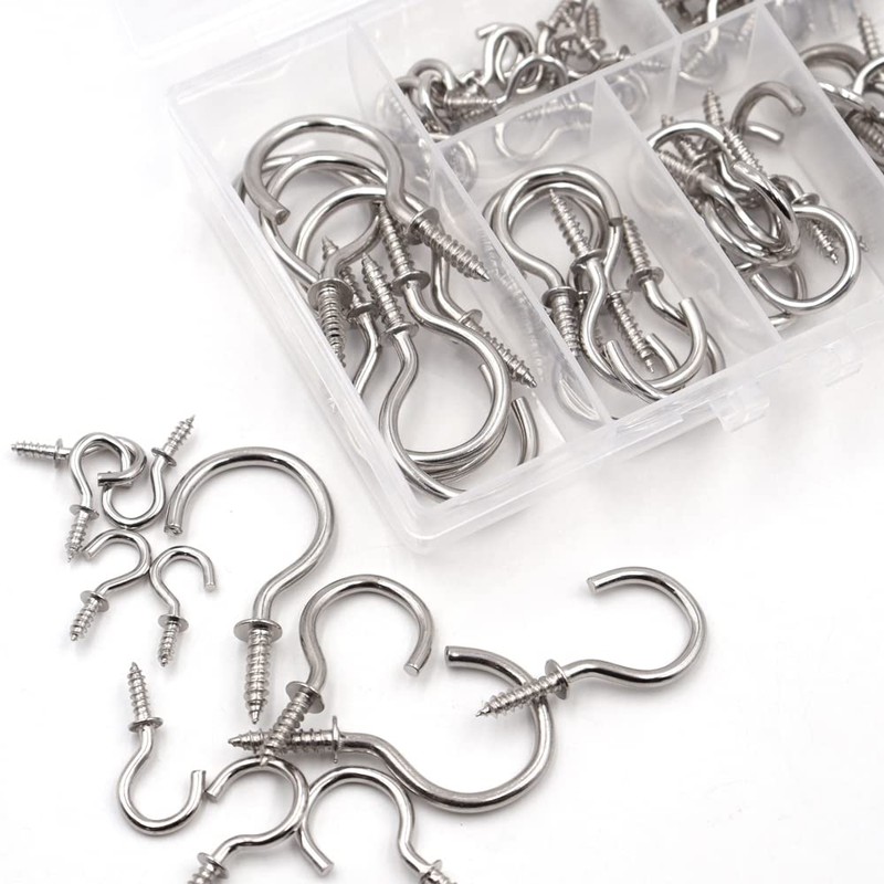Yuknees Pack of 75 Screw Hooks, Stainless Steel, Ceiling Hooks, Small Hooks for Wood, Hooks for Screwing Ideal for Christmas Decoration, Garden, Wood