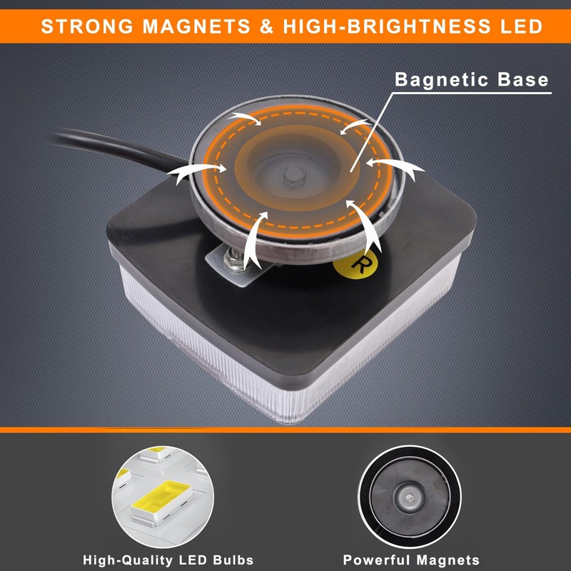 - 【Magnetic Installation】 Each light comes with a magnetic base featuring powerful magnets for easy mounting on metal surfaces, ensuring stability even at high speeds.