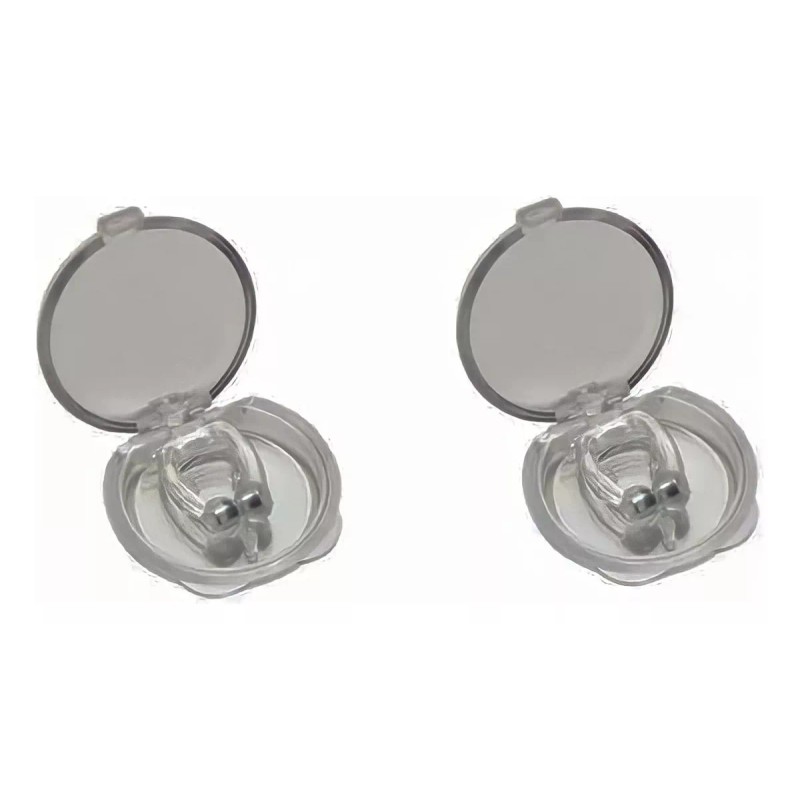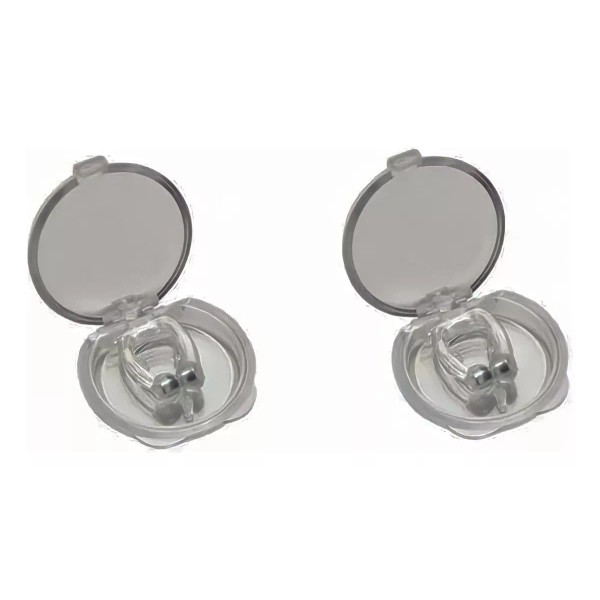 2 clips magnéticos anti ronquidos, cada uno con su estuche de plástico rígido.