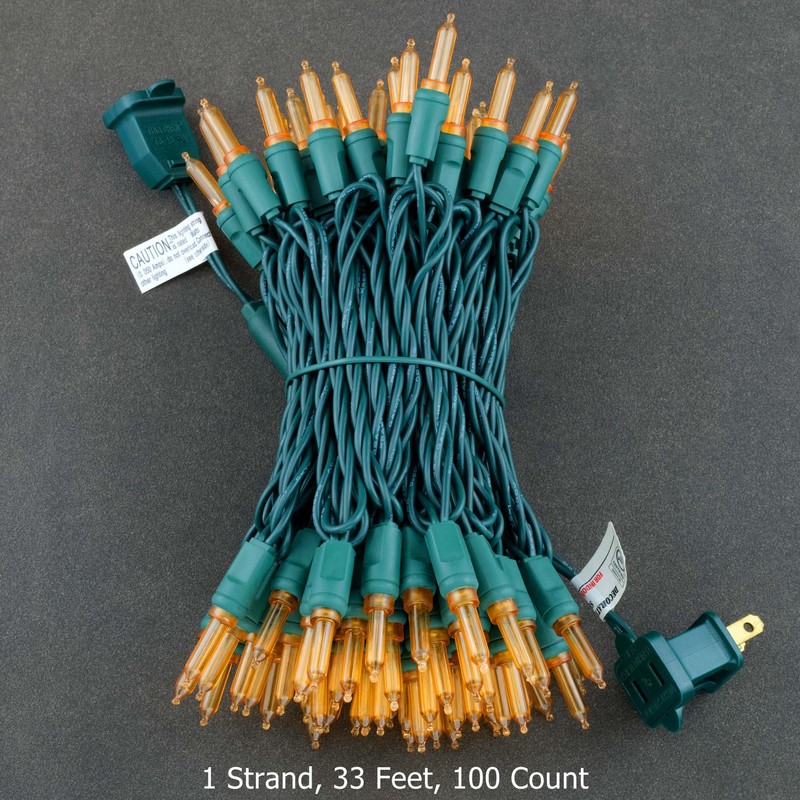- SPECIFICATIONS ♥ 100 count orange T5 traditional style LED bulbs on green wire, total length of lighted section is 33 feet, 4-inch spacing, 4-inch lead, 4-inch tail. Commercial grade 22 AWG wire with pure copper core, tough and heavy duty.