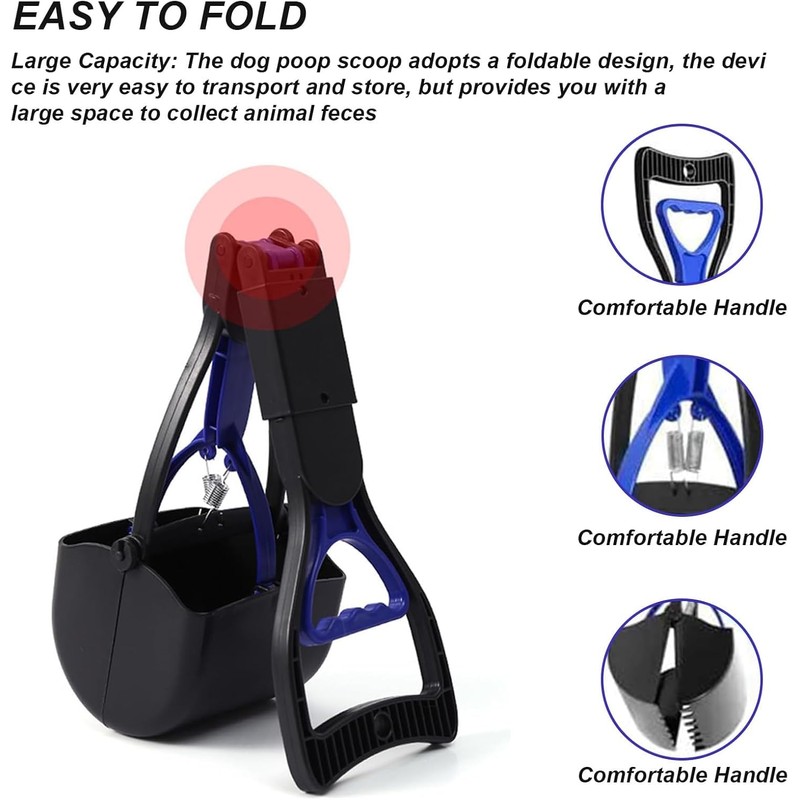- Foldable design: the dog waste spoon is foldable, so it can be easily transported and saves storage space. Close the clamp to prevent loosening and moving, and extend the life of the product